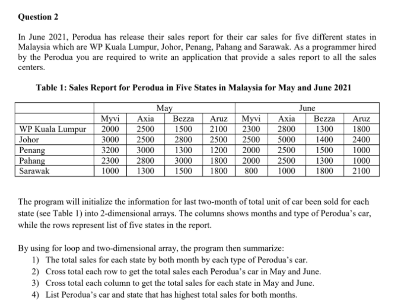 Solved Question 2 In June 2021 Perodua Has Release Their Chegg Com